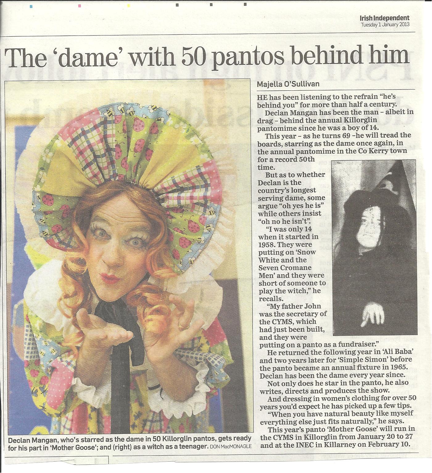 The dame with 50 pantos behind him. - Irish Independent 1st January 2013
